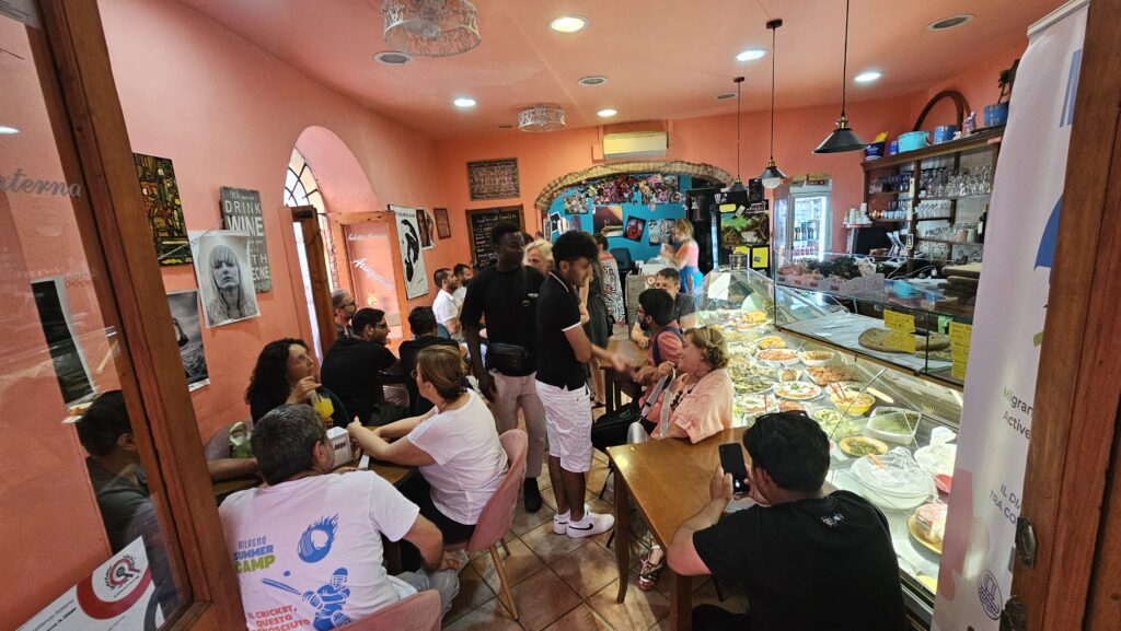 The final day closed the camp with sports and laughter. At the Siena Baseball field in Castellina Scalo, locals discovered cricket, a sport completely new to many of them but well- loved by the migrant participants. Mixed teams played short matches, cheered on by the crowd, with migrants learning rules and techniques with enthusiasm. The day ended with a barbecue offered by NACU, and the joy of playing together lingered well into the evening. Cricket, like